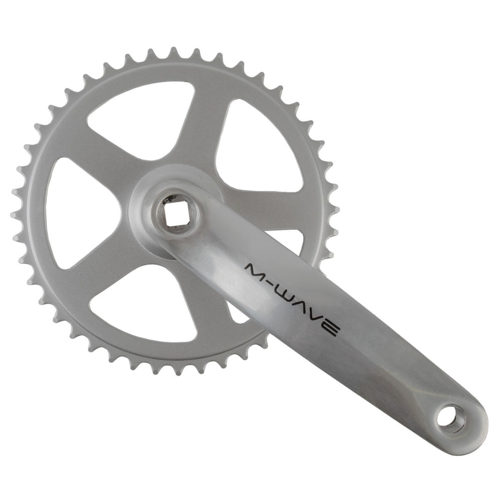 značka M-Wave Nemecko, jednoprevodník, oceľové ozubené prevodníky, duralové 170 mm kľuky, farba strieborná - leštený dural, počet zubov 44, bez krytu reťaze, pre štvorhrannú 131 mm osku, vhodná reťaz 1/2 x 3/32