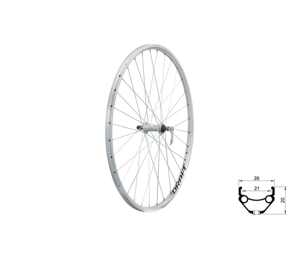 Zapletené koleso KLS DRAFT V-brake F je predné koleso určené pre bežné vidlice s V-brzdami a upínaním pomocou rýchloupínáku.