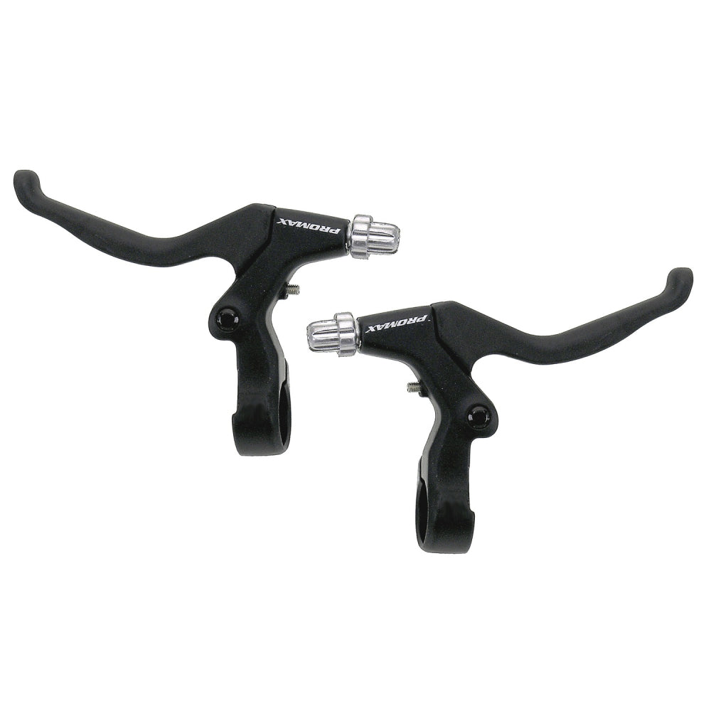 značka Promax, materiál dural, farba čierna, pre cantilever aj V-brzdy, s vratnou pružinou, so skrutkou nastavenia vzdialenosti páky od riadidiel, dĺžka páky na 3 prsty