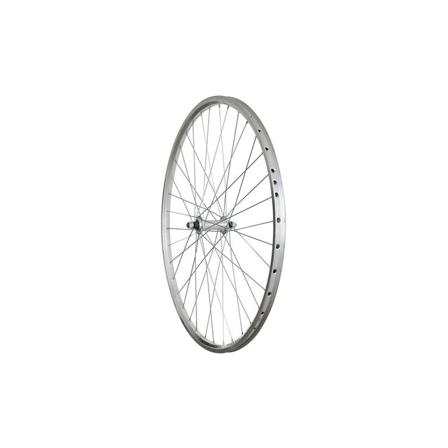 Kompletne vypletené 28 predné koleso, ráf značka Dragon , farba strieborná, materiál dural, dvojstenný nízky profil, rozmer 622 x 19, priemer kolesa 28 palcov, 36 dier, náboj dural strieborný na matice, špice zinkované