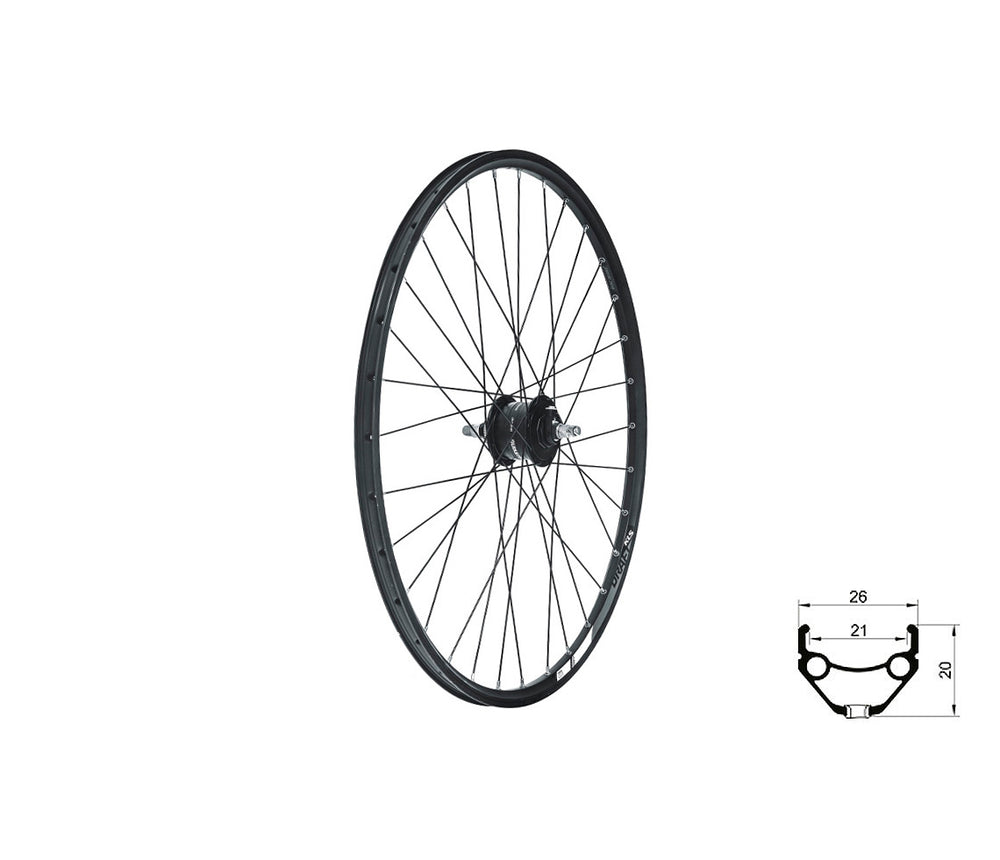 Zapletené koleso KLS DRAFT Dynamo DSC F je predné koleso s dynamom vo vnútri náboja. Dynamo vyrába elektrickú energiu pre Vaše osvetlenie, a preto je najekologickejším riešením ktoré môžete pre svoj bicykel zvoliť.