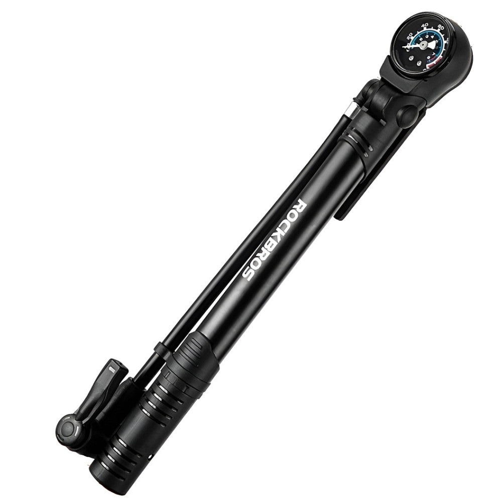 značka ROCKBROS, mini pumpa, 120 PSI/8,2BAR s manometrom a hadičkou pre všetky typy ventilov pre MTB, cestné bicykle, lopty…Vynikajúci výkon. T-rukoväť a sklápateľná pätka s manometrom pre lepše hustenie. Materiál z hliníkovej zliatiny je veľmi odolný, voči opotrebovaniu a korózii. Číselník je veľký a dokáže jasne zobraziť tlak vzduchu . Držiak pumpy sa dá nainštalovať pod košík fľaše bicykla, zaberá málo miesta a neovplyvňuje používanie fľaše. Dĺžka 31 cm. Hmotnosť 185 g.