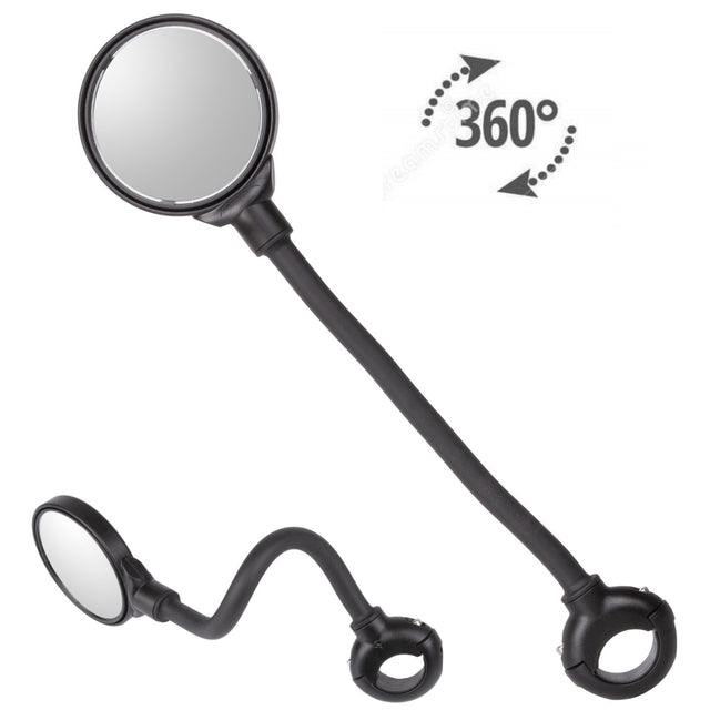zrkadlo spätné flexibilné, dĺžka 315 mm, priemer zrkadla 70 mm, na riaditka 21-30 mm, otočné o 360 stupňov, plast, čierne, balené na karte M-Wave
